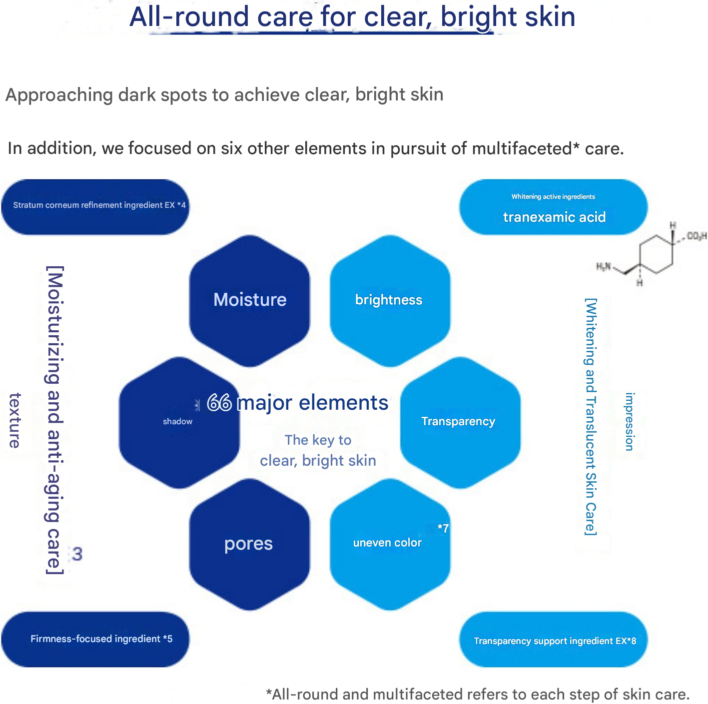 Effectively suppresses melanin production, helping to fade dark spots, acne marks, and discoloration. - Intensive Brightening Treatment