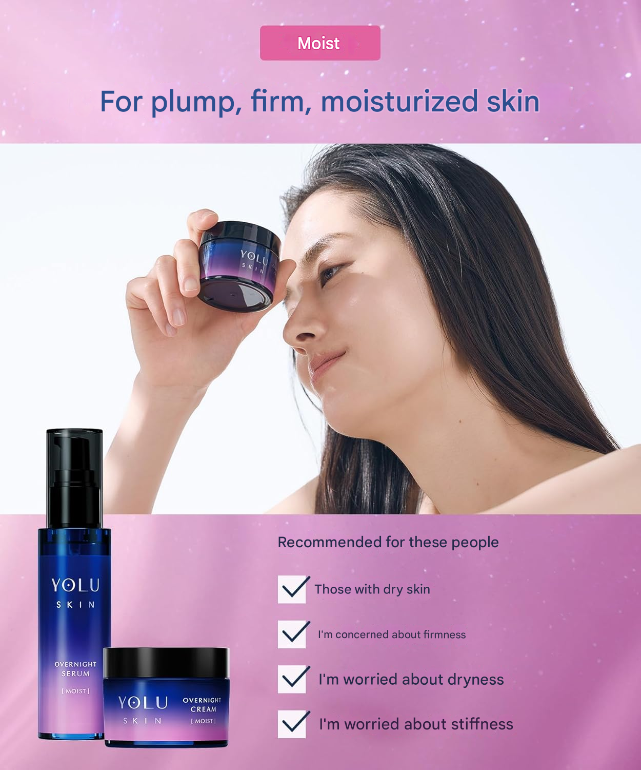 Wake up to soft, plump, beautifully restored skin with the YOLU Skin Overnight Cream Moist. Designed as an intensive nighttime treatment, this rich yet breathable cream works while you sleep to deeply hydrate, repair, and calm the skin for a well-rested, radiant complexion by morning.